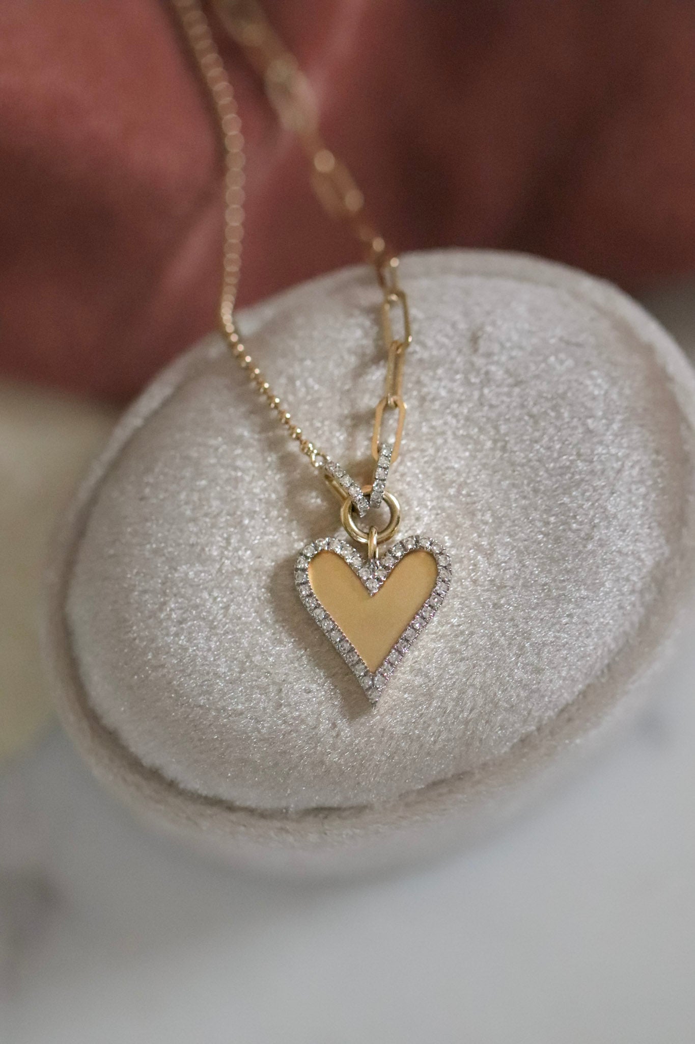 Lady's Yellow Heart 14 Karat Necklace With Round Diamonds
