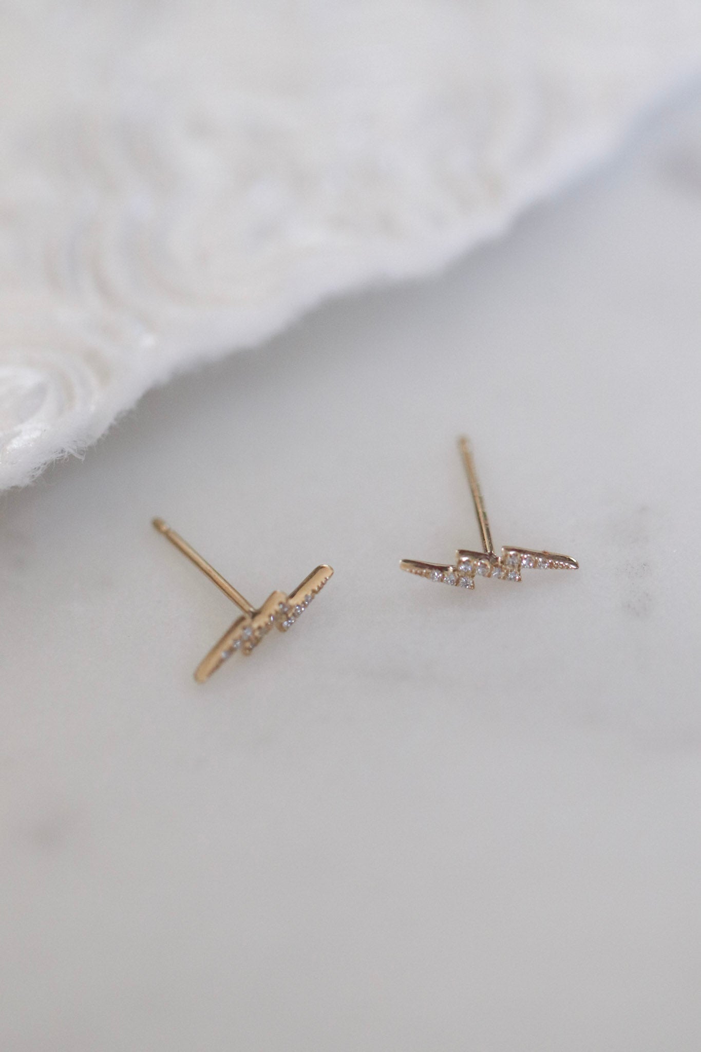 These bold and stylish lightning bolt stud earrings are crafted in 14K yellow gold and accented with 0.04 total weight of round natural diamonds for a subtle sparkle. Perfect for everyday wear or adding a touch of personality to any curated ear look.