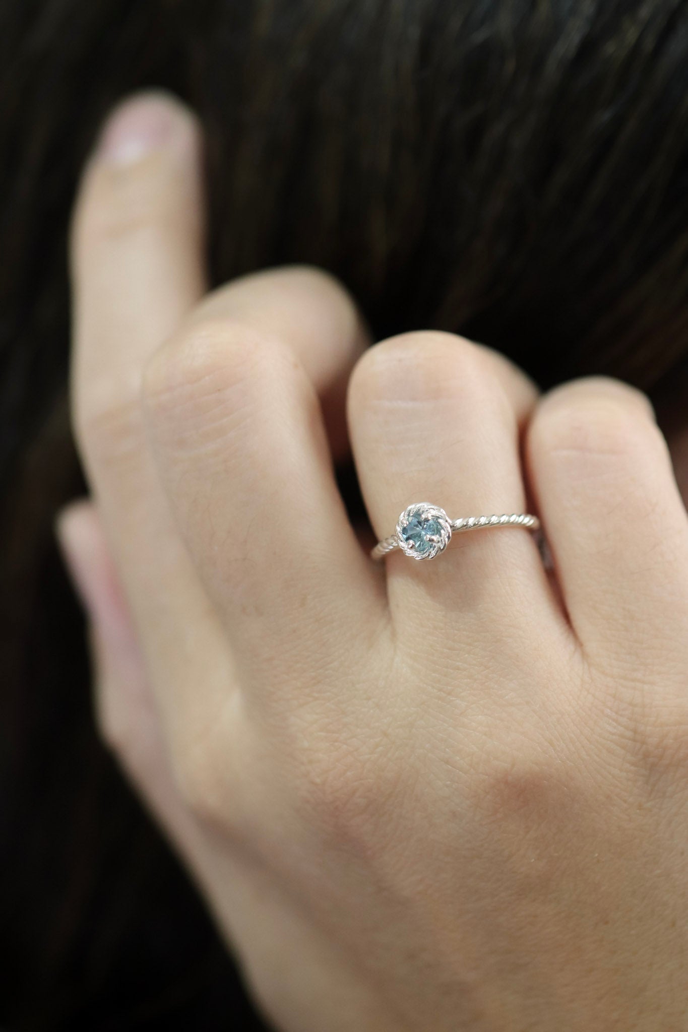 A timeless mix of sparkle and texture. This sterling silver ring features a 0.33 ct round Montana sapphire set within a rope-style halo, adding depth and visual interest to the classic solitaire silhouette. Set in-house by our goldsmiths, this ring combines artisan craftsmanship with elegant design.