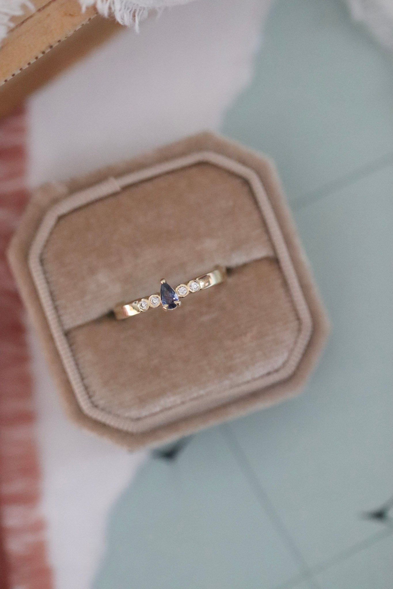 Center Stone: 0.185 ct Pear Yogo Sapphire