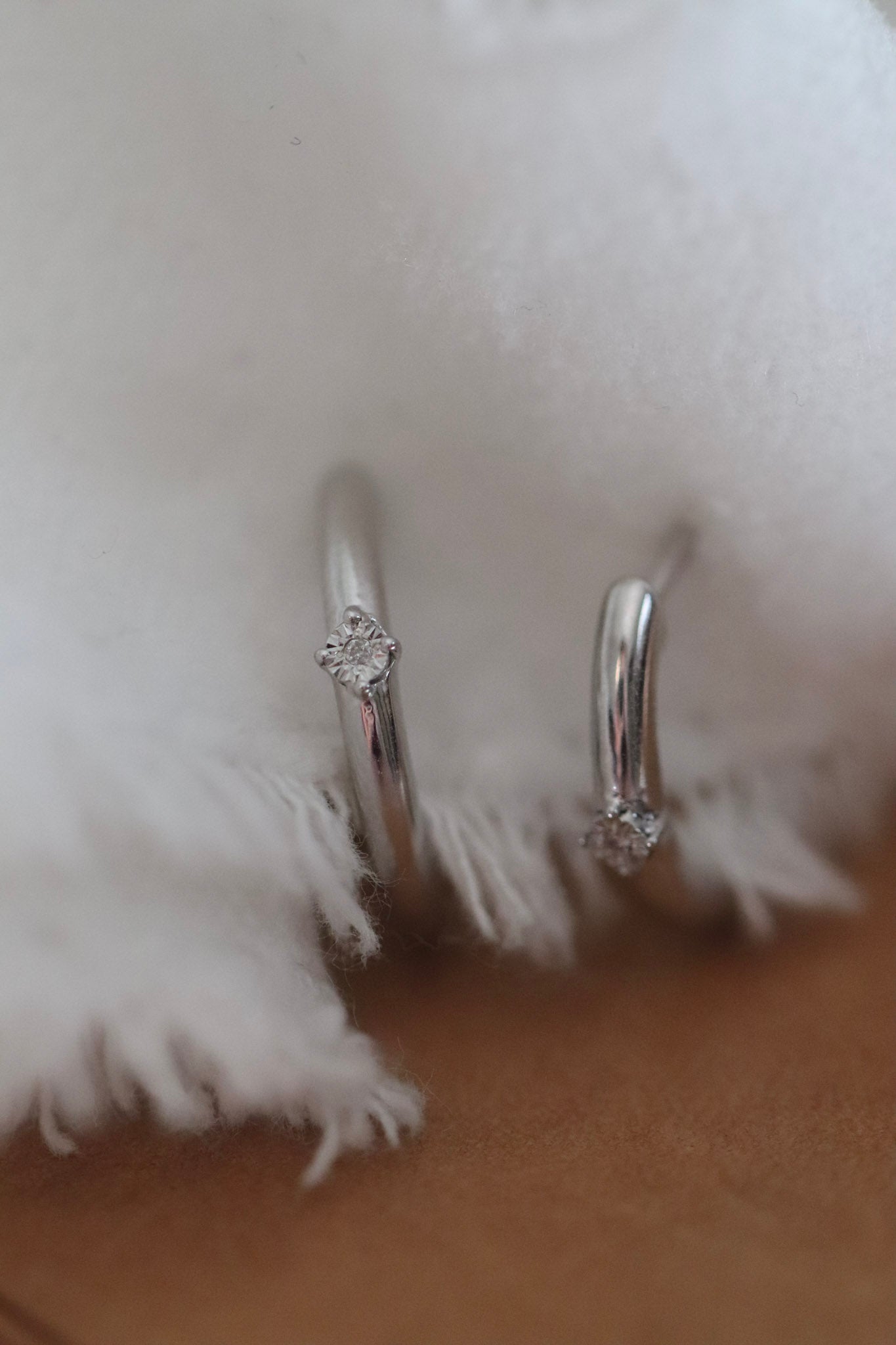 A classic touch of sparkle for everyday elegance. These sterling silver hoop earrings are each set with 0.01 carat total weight of natural round diamonds, providing subtle shimmer and timeless style. Perfect for casual wear or dressing up, these hoops are versatile and refined.