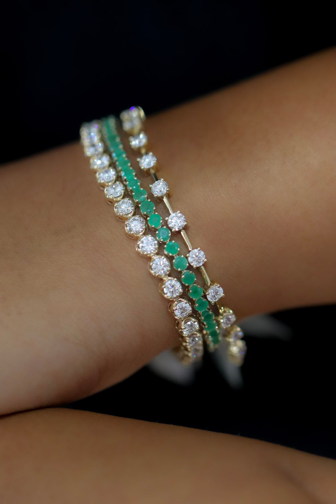 14k yellow gold station tennis bracelet offering 4 carats total in lab grown, E/F VS+ diamonds. 7.25” standard length. Accompanied by IGI lab grown diamond report.